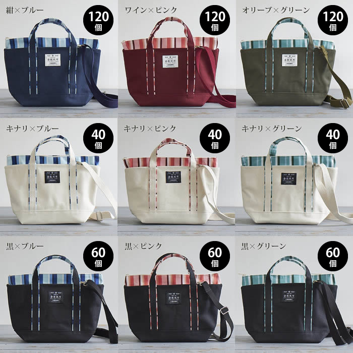 今年は、ショルダー付きミニトートを全9色展開で販売します。
