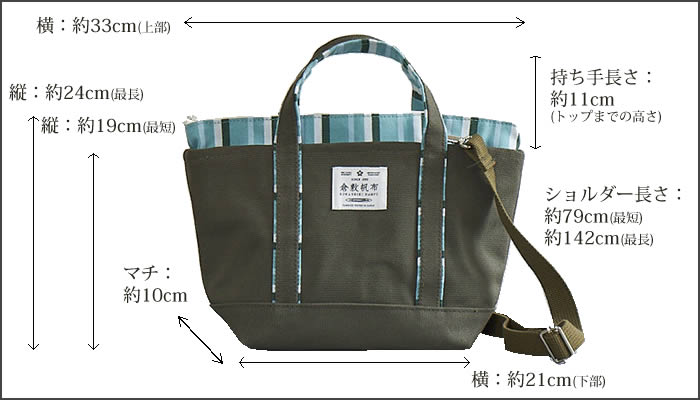 素 材 :(メインボディ)6号綿帆布・(ストライプ部分)先染めストライプ10号パラフィン加工